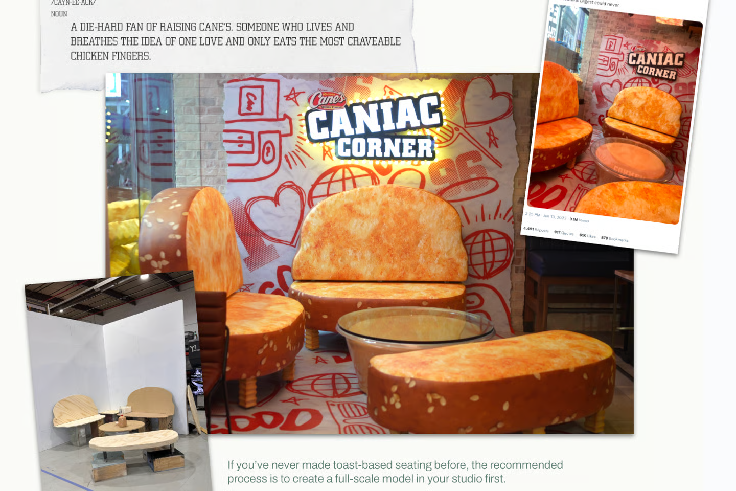 We turned 8,000+ square feet into a flagship that felt unmistakably Cane’s. Texas Toast couches anchored Caniac Corner. A digital crinkle-cut fry screen drew crowds. Cane III stood dressed as Lady Liberty. Big moments, yes—but grounded in the brand’s own assets, not Times Square gimmicks.